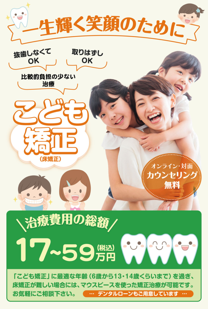 当院の「こども歯科矯正(床矯正)」は、**自由診療(保険適用外)**です。